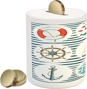 Current price $19.99 $ 19. Buy nautical piggy bank, old pirate ship in the sea historical cruise retro voyage grunge style art, ceramic coin bank money box for cash saving, 3.6 x 3.2, plum tan, by ambesonne at walmart.com So pick up the metal buoy coin bank today at a bargain price while supplies last! Designed with a white with light blue stripes sail to compliment the white back sail, a red ribbon flag tops of a gold mast, and a deep shade of navy and accented with a gold rim and anchor detail on the boat's hull. Free shipping for many products! $39.00 regular price $49.97 on sale. Our piggy banks are a thoughtful, personal gift. All of our banks are made from only the highest quality ceramic, known as dolomite, for increased durability. Each piggy bank is hand painted especially for you on an individual basis, so please message 4.7 out of 5 stars with 42 ratings. They feature a base that is deep glazed, insuring that this essential color doesn't wear off with repeated handling. Add to favorites personalized large piggy bank pink / navy blue nautical, anchor, sailboat newborn, baby shower, ring bearer, flower girl, christening gift. This nautical personalized piggy bank is created with porcelain ceramic and is completely hand painted using the highest quality acrylic paint.